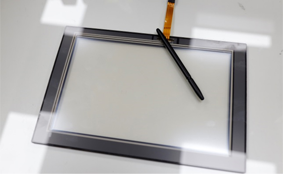 저항막식 또는 감압식 터치 패널로, 전도성 물질인 투명전극(ITO Metal Layer)층이 코팅된 상, 하판을 Dot Spacer 사이에 전극 층이 마주보도록 합착시켜 상부기판과 하부기판의 투명전극층이 압력의 의해 접촉 되었을 때, 전극 사이의 압력을 감지하여 구동되는 원리이다.